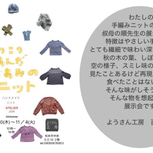 10月30日から11月4日まで、ニットの展示が工房ではじまります。